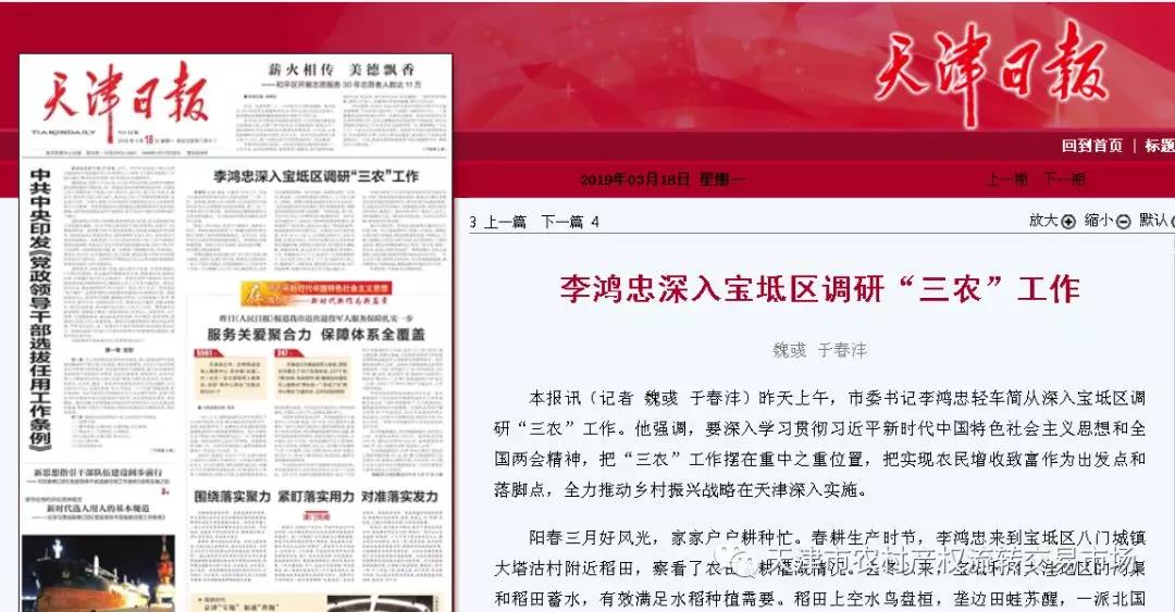 3月17日上午,市委书记李鸿忠轻车简从深入宝坻区调研“三农”工作。他强调,要深入学习贯彻习近平总书记新时代中国特色社会主义思想和全国两会精神,把“三农”工作摆在重中之重位置,把实现农民增收致富作为出发点和落脚点,全力推动乡村振兴战略在天津深入实施。