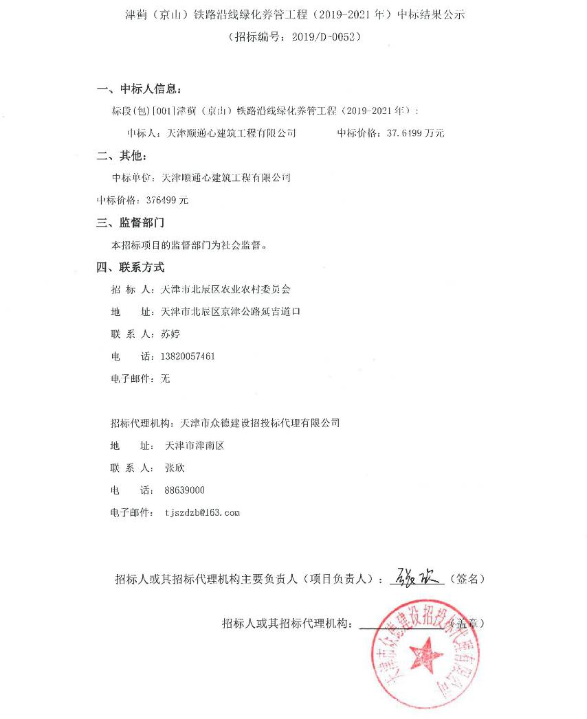 津蓟(京山)铁路沿线绿化养管工程(2019-2021年)中标结果公示