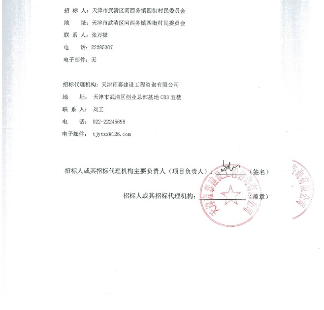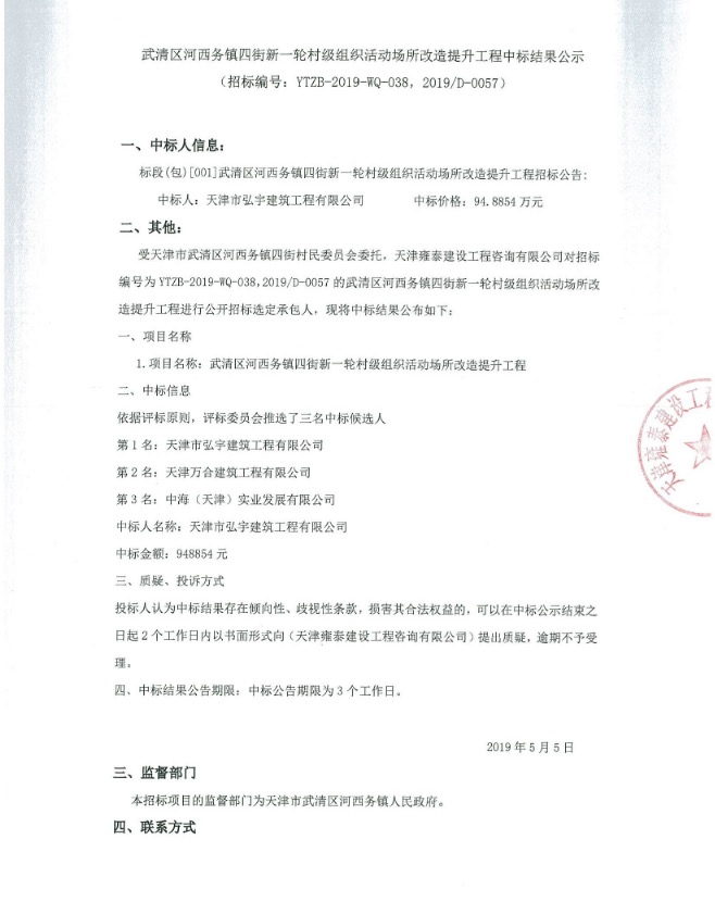 武清区河西务镇四街新一轮村级组织活动场所改造提升工程中标结果公示