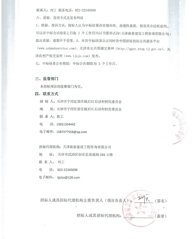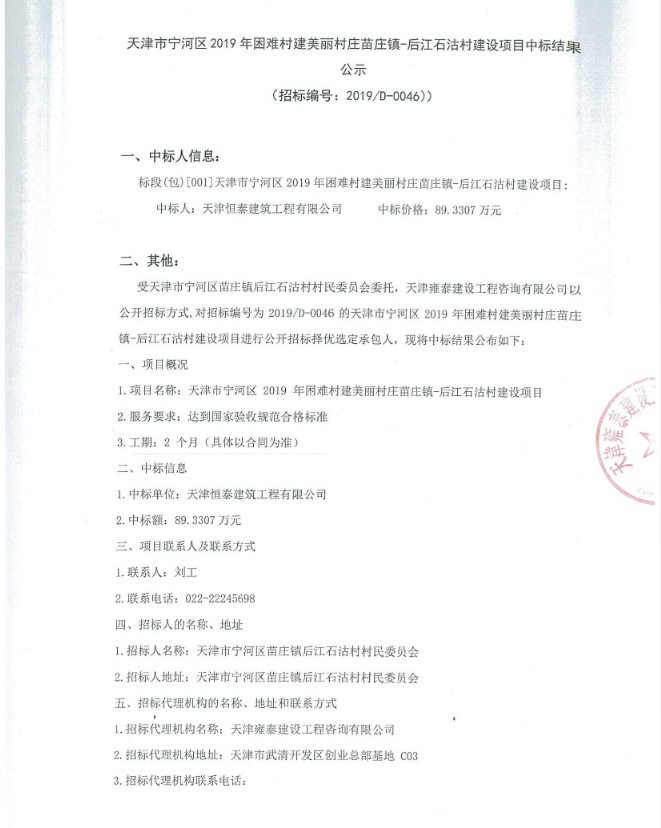 天津市宁河区2019年困难村建美丽村庄苗庄镇-后江石沽村建设项目中标结果公示