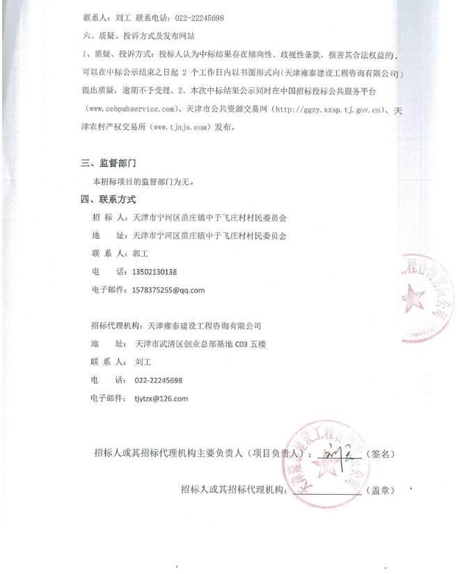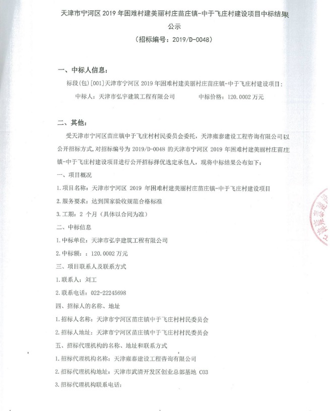 天津市宁河区2019年困难村建美丽村庄苗庄镇-中于飞庄村建设项目中标结果公示