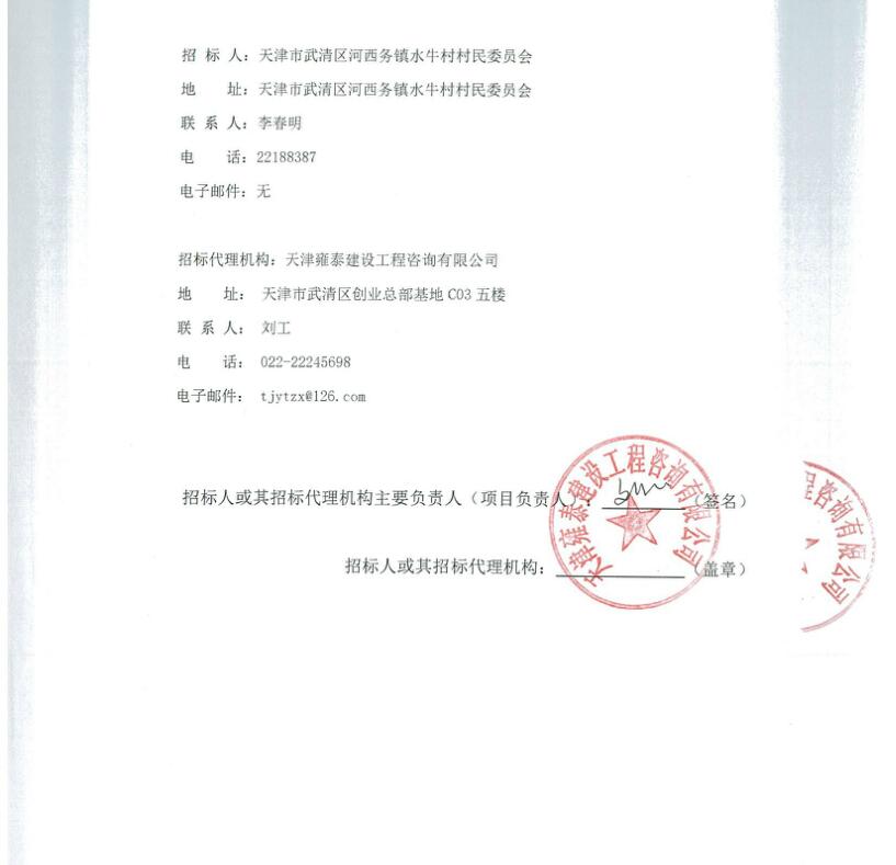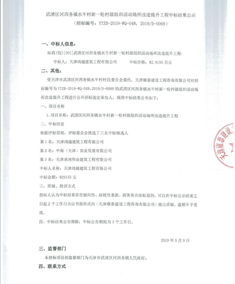 武清区河西务镇水牛村新一轮村级组织活动场所改造提升工程中标结果公示