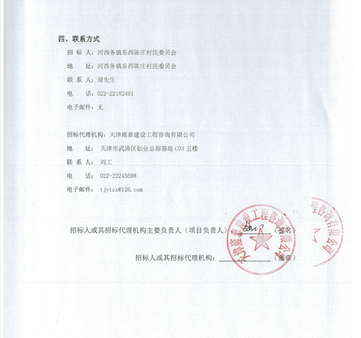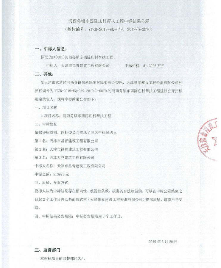 河西务镇东西陈庄村帮扶工程中标结果公示