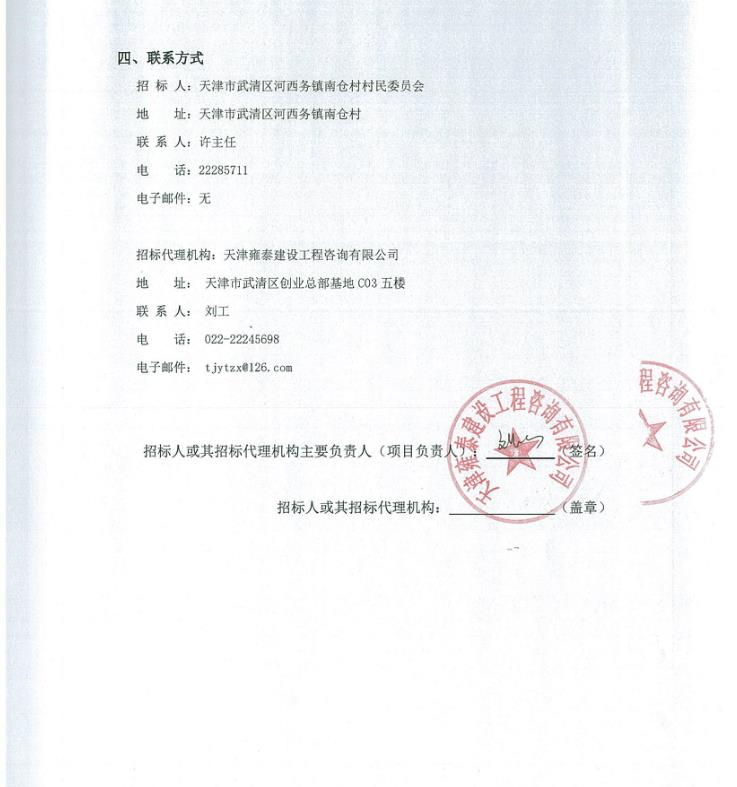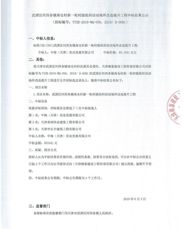 武清区河西务镇南仓村新一轮村级组织活动场所改造提升工程中标结果公示