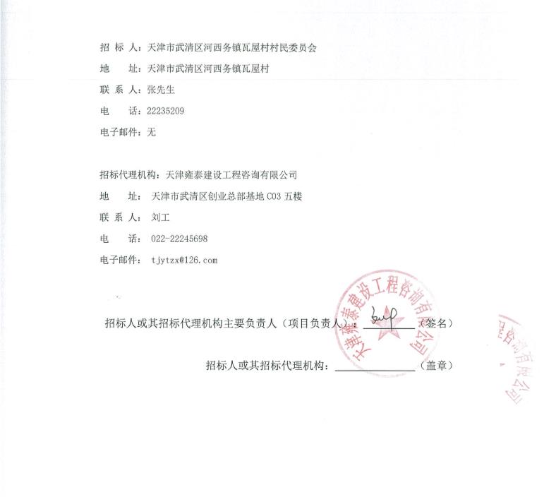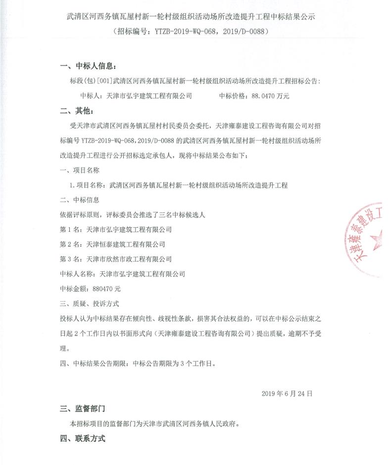 武清区河西务镇瓦屋村新一轮村级组织活动场所改造提升工程中标结果公示
