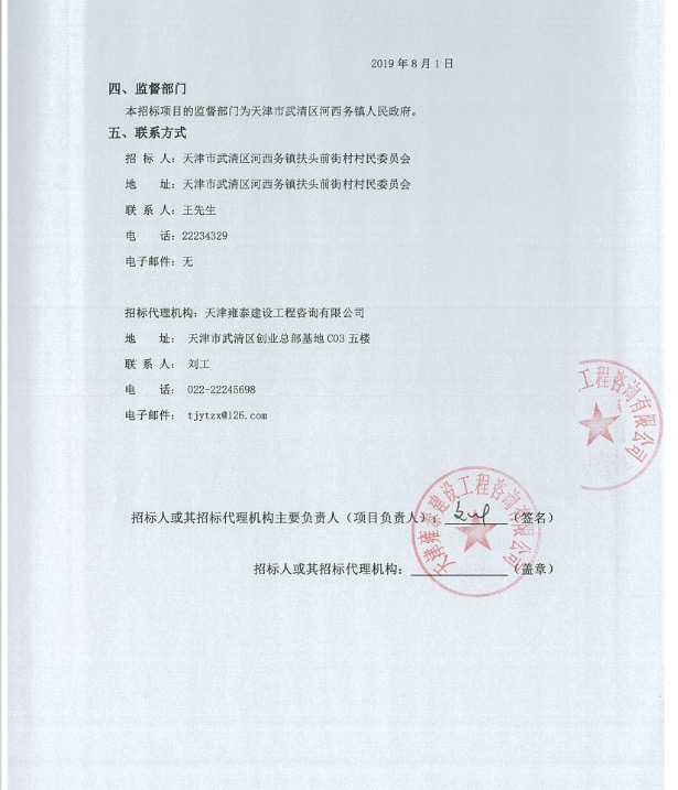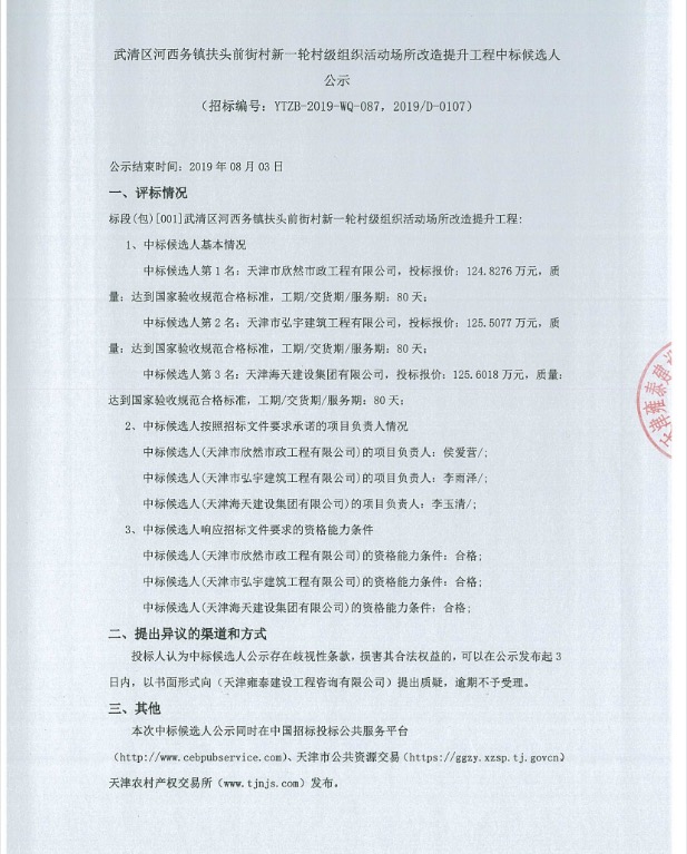 武清区河西务镇扶头前街村新一轮村级组织活动场所改造提升工程中标候选人公示