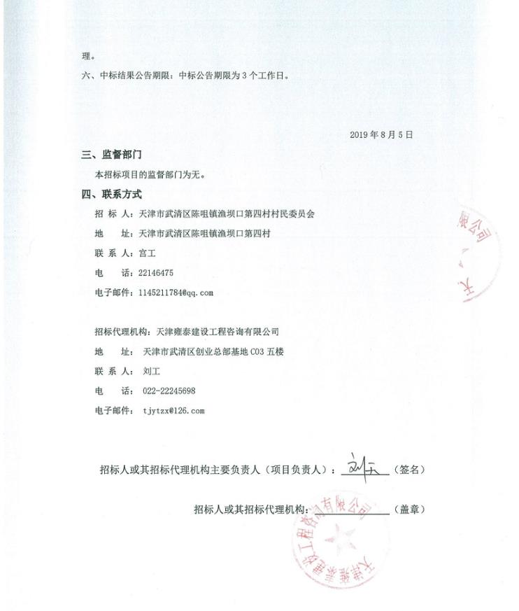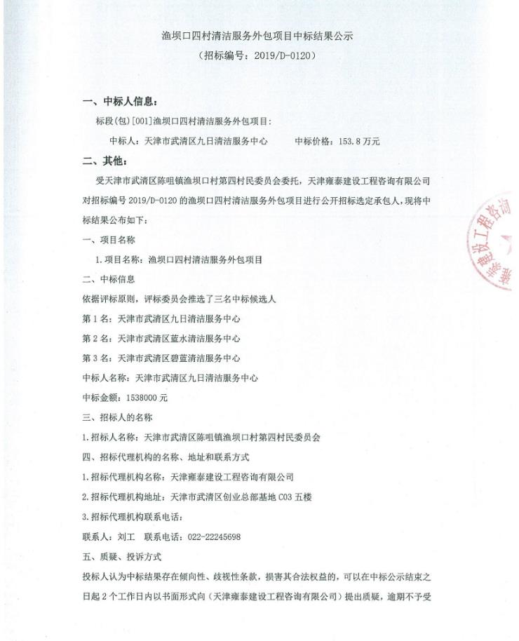 渔坝口四村清洁服务外包项目中标结果公示